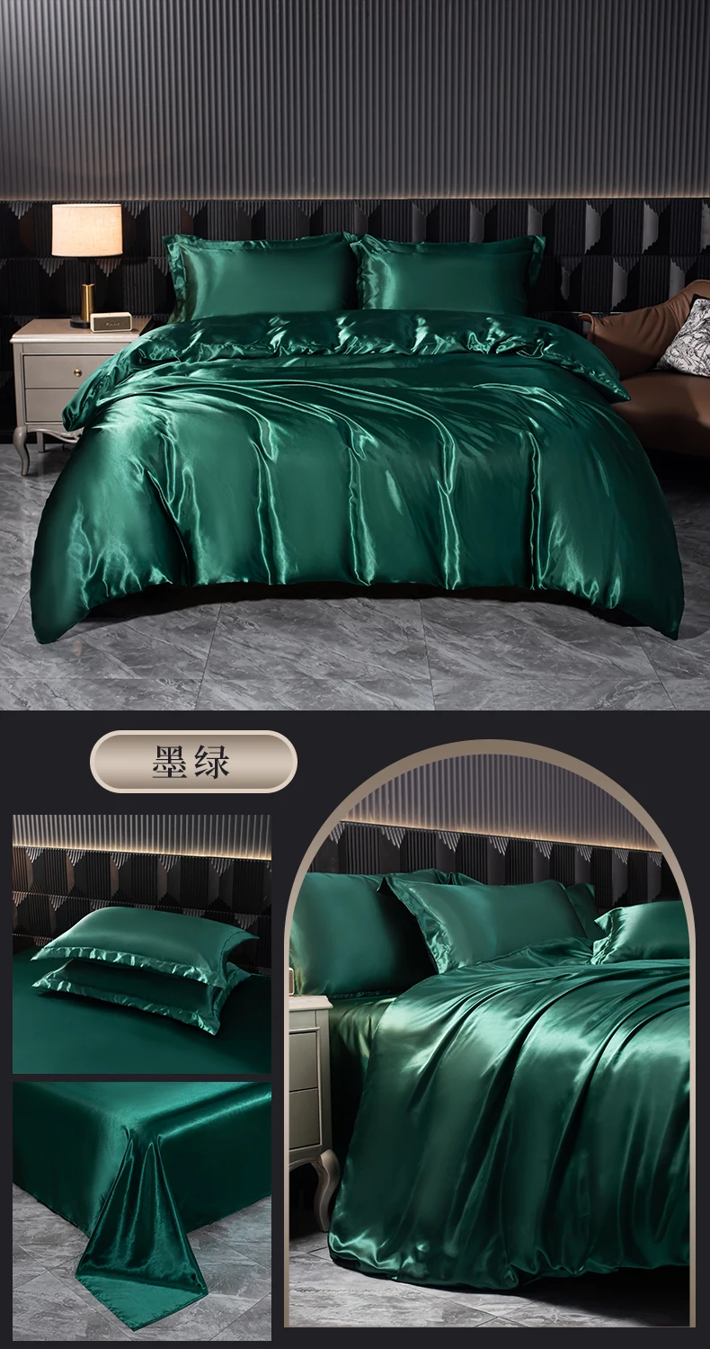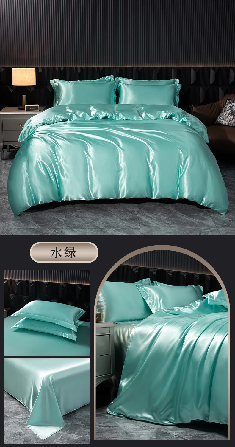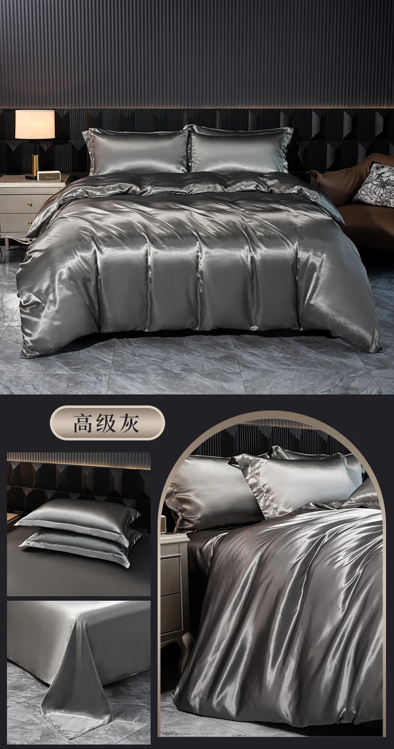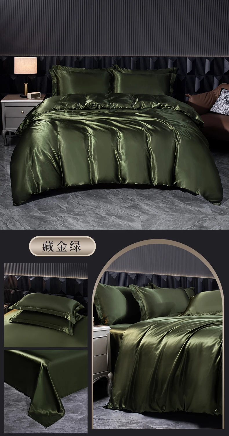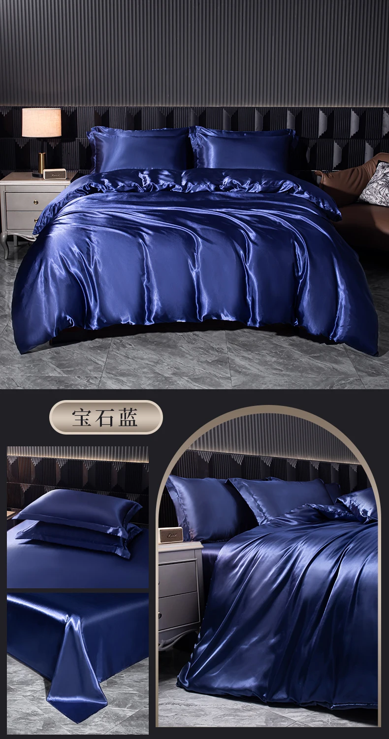 Solid Silk Bedding Set with Duvet Cover Bed Sheet Pillowcases Luxury Satin Single Double Bedsheet King Queen Twin Size