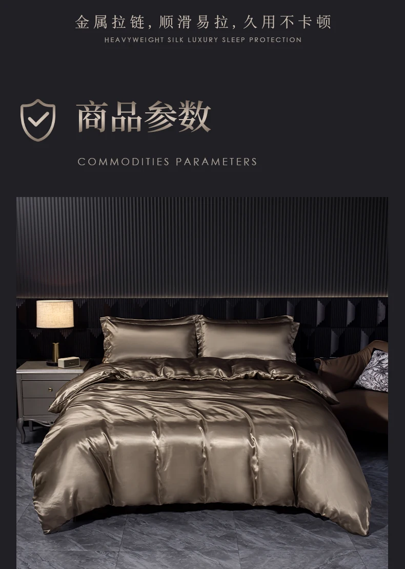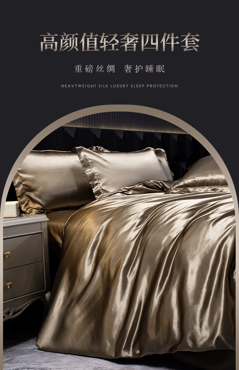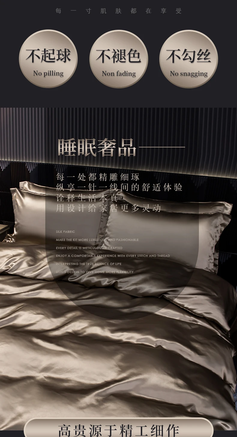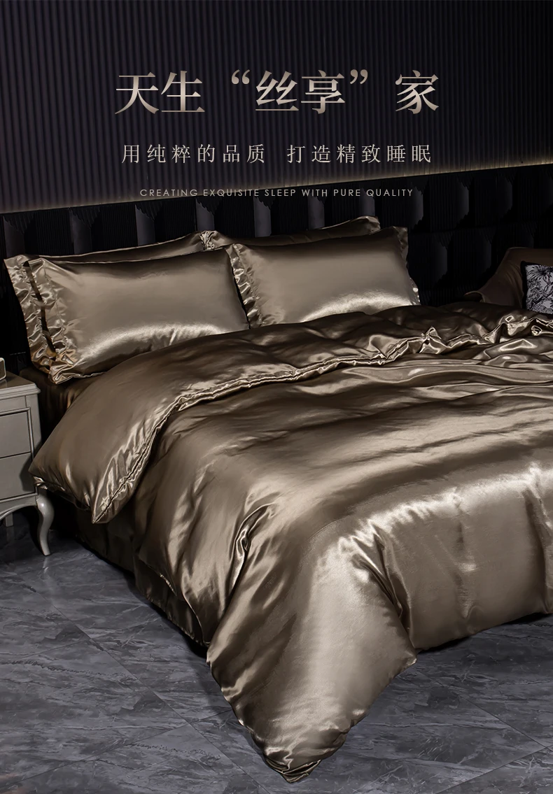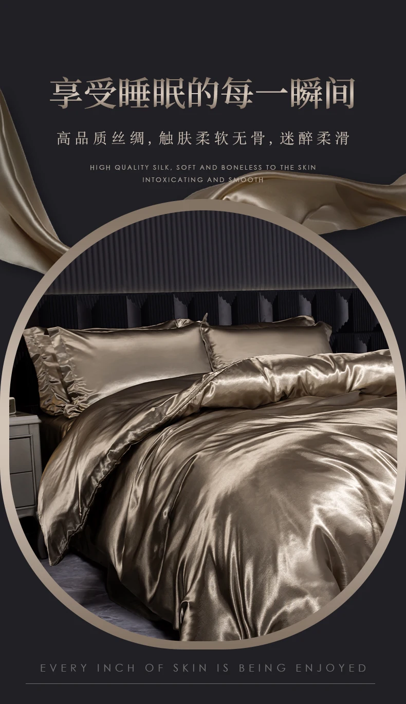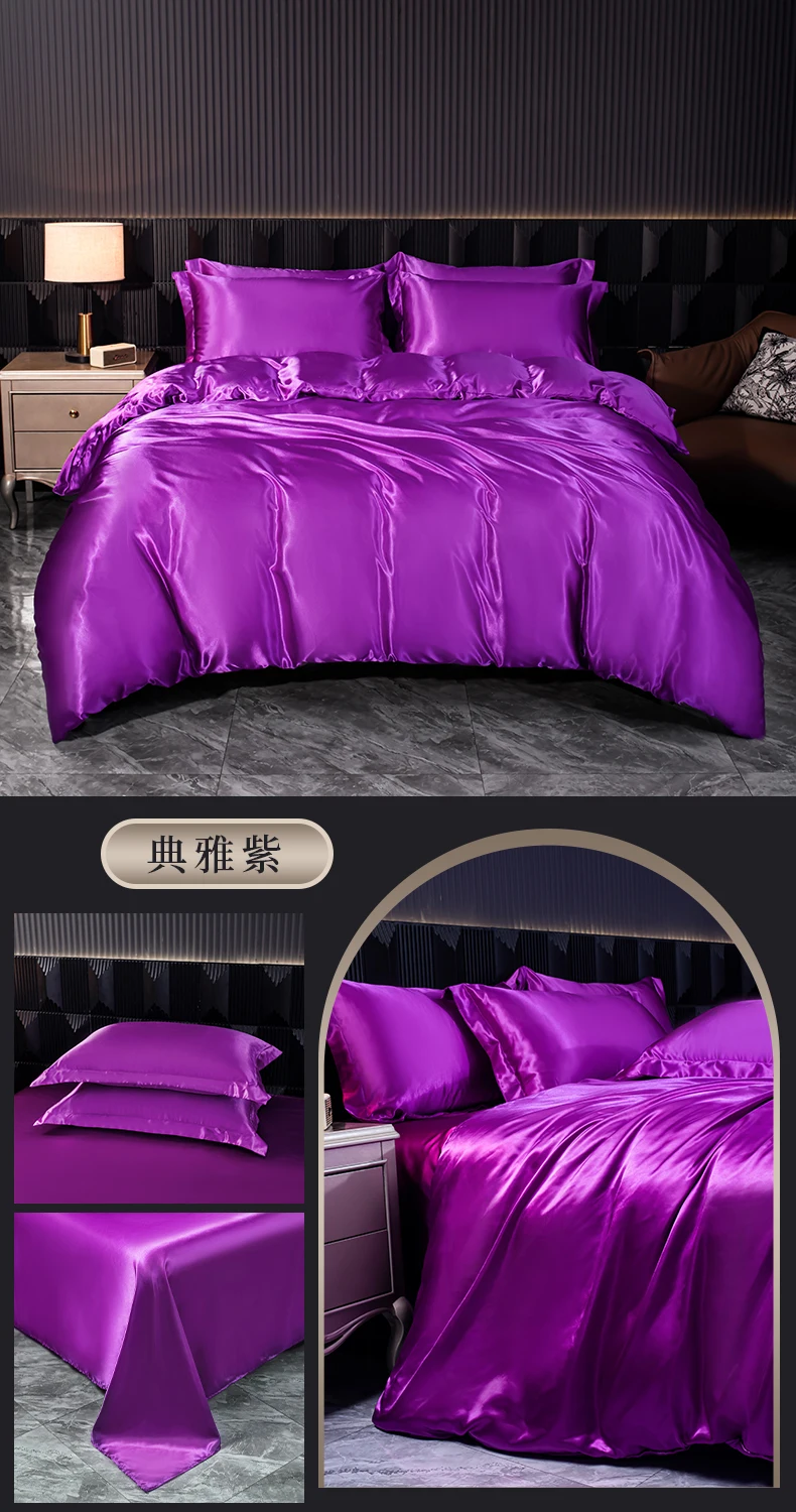 Solid Silk Bedding Set with Duvet Cover Bed Sheet Pillowcases Luxury Satin Single Double Bedsheet King Queen Twin Size