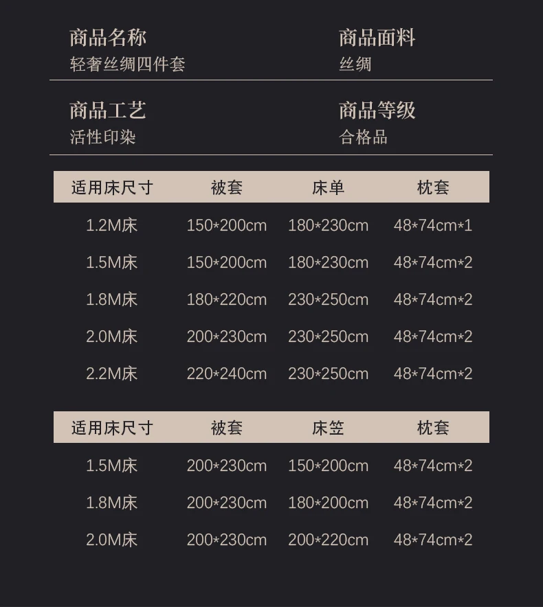 1.8m fitted sheet: duvet cover 200x230cm fitted sheet 180x200cm pillowcase 48x74cmx2